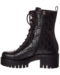 - About the brand: Eclectic and coveted. Italian luxury redefined. - Please note: Size selections are European. For US conversions, please reference size chart. - Based on feedback from Members, this item typically runs large. We suggest sizing down. - Made in Italy - GG Leather Bootie in black GG leather and light fine gold hardware - Lace-up closure - Lightly padded leather insole - Rubber lug sole - 2.5in heel - 1.5in platform - 7in shaft - 10in boot circumference - Please note: All measurements are approximate and were taken from a size 37; slight variations may occur. - The Boot Size Guide - Our products are 100% genuine. In some cases we purchase merchandise from trusted independent suppliers and not directly from the brand owner. In all cases we stand by the authenticity of every product sold on our site.