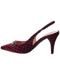 - About the brand: Eclectic and coveted. Italian luxury redefined. - Please note: Size selections are European. For US conversions, please reference size chart. - Based on feedback from Members, this item typically runs large. We suggest sizing down. - Made in Italy - Horsebit GG Velvet Slingback Pump in red GG velvet and light fine gold hardware with horsebit accent - Lightly padded leather insole - Smooth leather sole - 3.3in heel - Please note: All measurements are approximate and were taken from a size 37; slight variations may occur. - Our products are 100% genuine. In some cases we purchase merchandise from trusted independent suppliers and not directly from the brand owner. In all cases we stand by the authenticity of every product sold on our site.