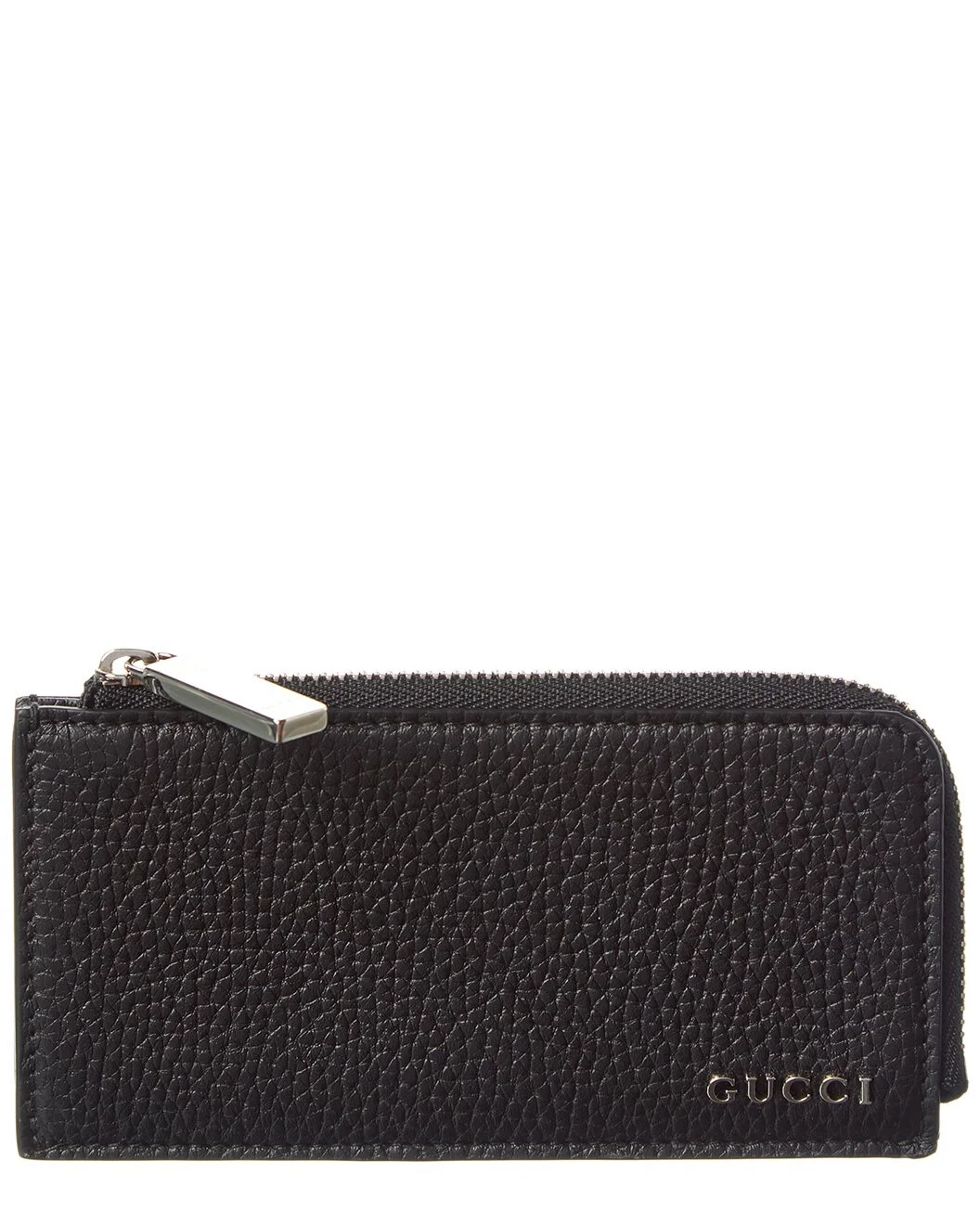 - About the brand: Eclectic and coveted. Italian luxury redefined. - Made in Italy - Leather Coin Wallet in black leather and dark silver hardware with metal logo and card slots - Interior design details: moire lining - Measures 5.3in wide x 3in high x 0.4in deep - Zipper closure - Please note: All measurements were taken by hand and are approximate; slight variations may occur. - Our products are 100% genuine. In some cases we purchase merchandise from trusted independent suppliers and not directly from the brand owner. In all cases we stand by the authenticity of every product sold on our site.