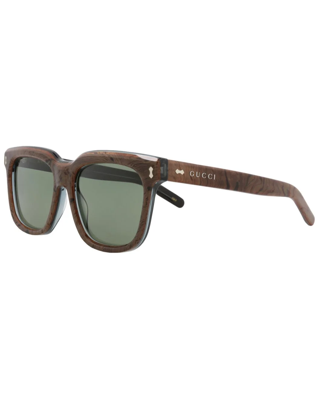 - About the brand: Eclectic and coveted. Italian luxury redefined. - Frame shape: square/rectangle - Frame color: shiny transparent azure + laminetta radica - Lens color: green tinted - Logo at temple arm - Lens: 53mm wide - Bridge: 18mm wide - Arms: 145mm long - Case included; case size and color may vary - Made in Italy - Model #: GG1523S-30014802-003 - The Eyewear Size Guide - Our products are 100% genuine.  In some cases we purchase merchandise from trusted independent suppliers and not directly from the brand owner.  In all cases we stand by the authenticity of every product sold on our site.