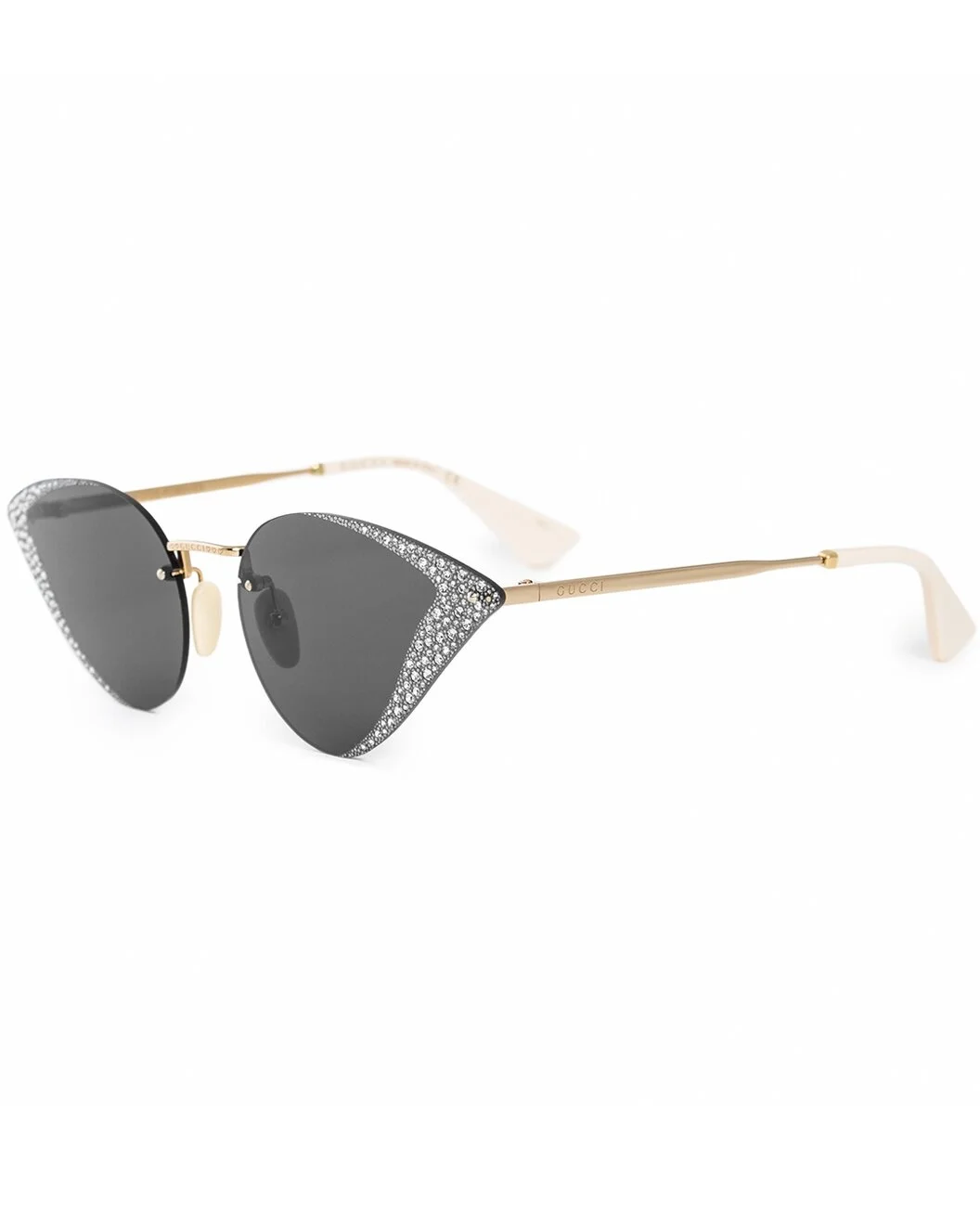 - About the brand: Eclectic and coveted. Italian luxury redefined. - Frame shape: cat eye - Frame color: gold - Lens color: grey - These frames flatter those with an oval, round, diamond, triangle or oblong shaped face - Plastic lenses with 100% UV protection - Lens: 64mm wide - Bridge: 19mm wide - Arms: 140mm long - Made in Italy - Model #: GG0898S - Our products are 100% genuine. In some cases we purchase merchandise from trusted independent suppliers and not directly from the brand owner. In all cases we stand by the authenticity of every product sold on our site. - The Eyewear Size Guide