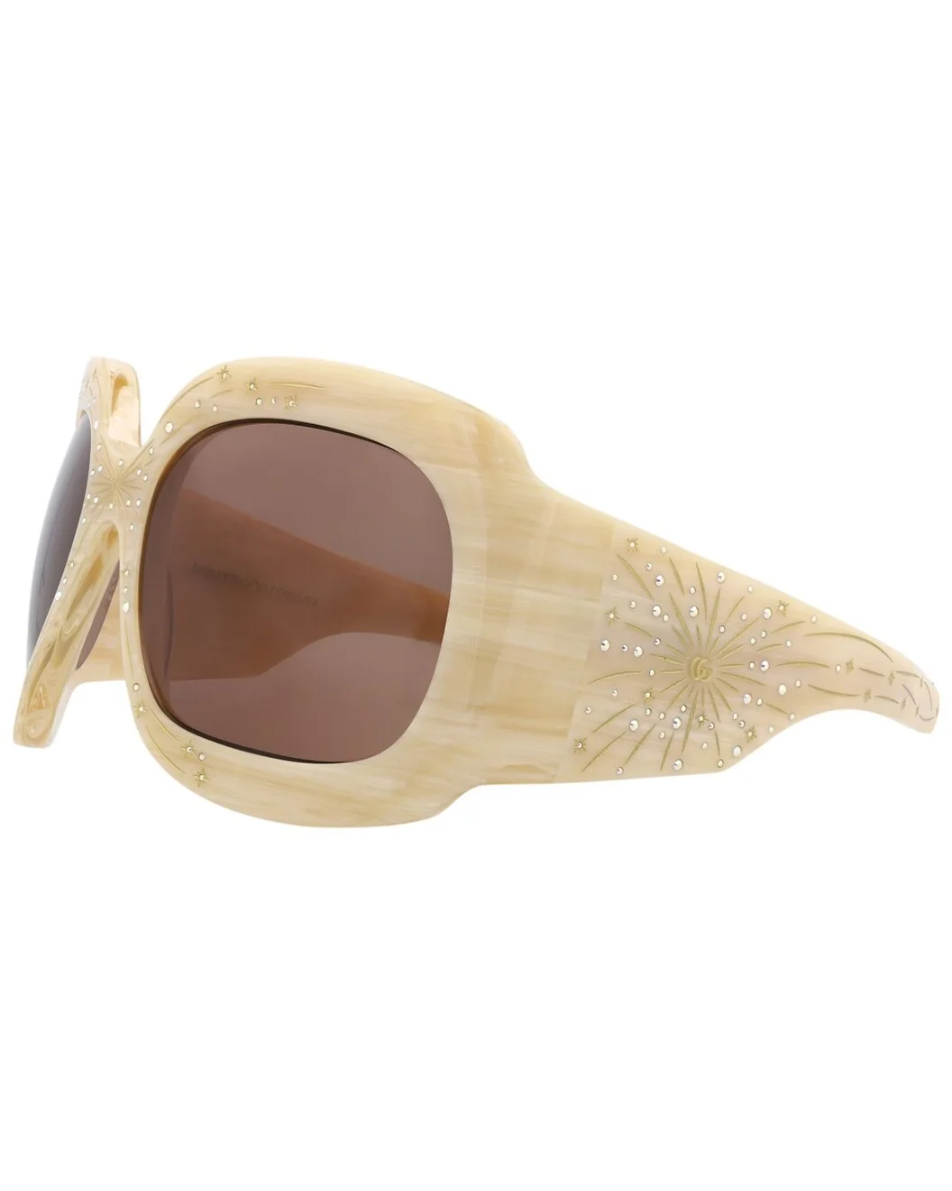 - About the brand: Eclectic and coveted. Italian luxury redefined. - Frame shape: shield/wrap - Frame color: shiny beige horn - Lens color: brown tinted - Lens: 60mm wide - Bridge: 20mm wide - Arms: 110mm long - Made in Italy - Model #: GG1093S-30012829-003 - The Eyewear Size Guide - Our products are 100% genuine. In some cases we purchase merchandise from trusted independent suppliers and not directly from the brand owner. In all cases we stand by the authenticity of every product sold on our site.