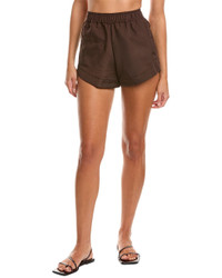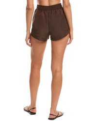 - Color/pattern: brauna brown - Inseam approximately 3in - Model is 5'9 and is wearing a size small. Measurements may vary slightly by size. - Design details: elastic waist, front welt pocket and two back pockets - Slip-on styling - 100% polyamide - Machine wash - Imported
