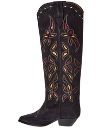 Denvee cutout embroidered leather-trimmed suede knee boots