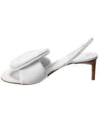 - Price as marked - About the brand: An accessible luxury brand cultivating new luxury. - Please note: Size selections are European. For US conversions, please reference size chart. - Made in Italy - Les Sandales Cuscinu Leather Slingback Sandal in white leather and gold-tone hardware with oversized round buckle and wooden heel - Adjustable ankle strap with buckle closure - Lightly padded leather insole - Smooth leather sole - 2in heel - Please note: All measurements are approximate and were taken from a size 37; slight variations may occur. - Our products are 100% genuine. In some cases we purchase merchandise from trusted independent suppliers and not directly from the brand owner. In all cases we stand by the authenticity of every product sold on our site.