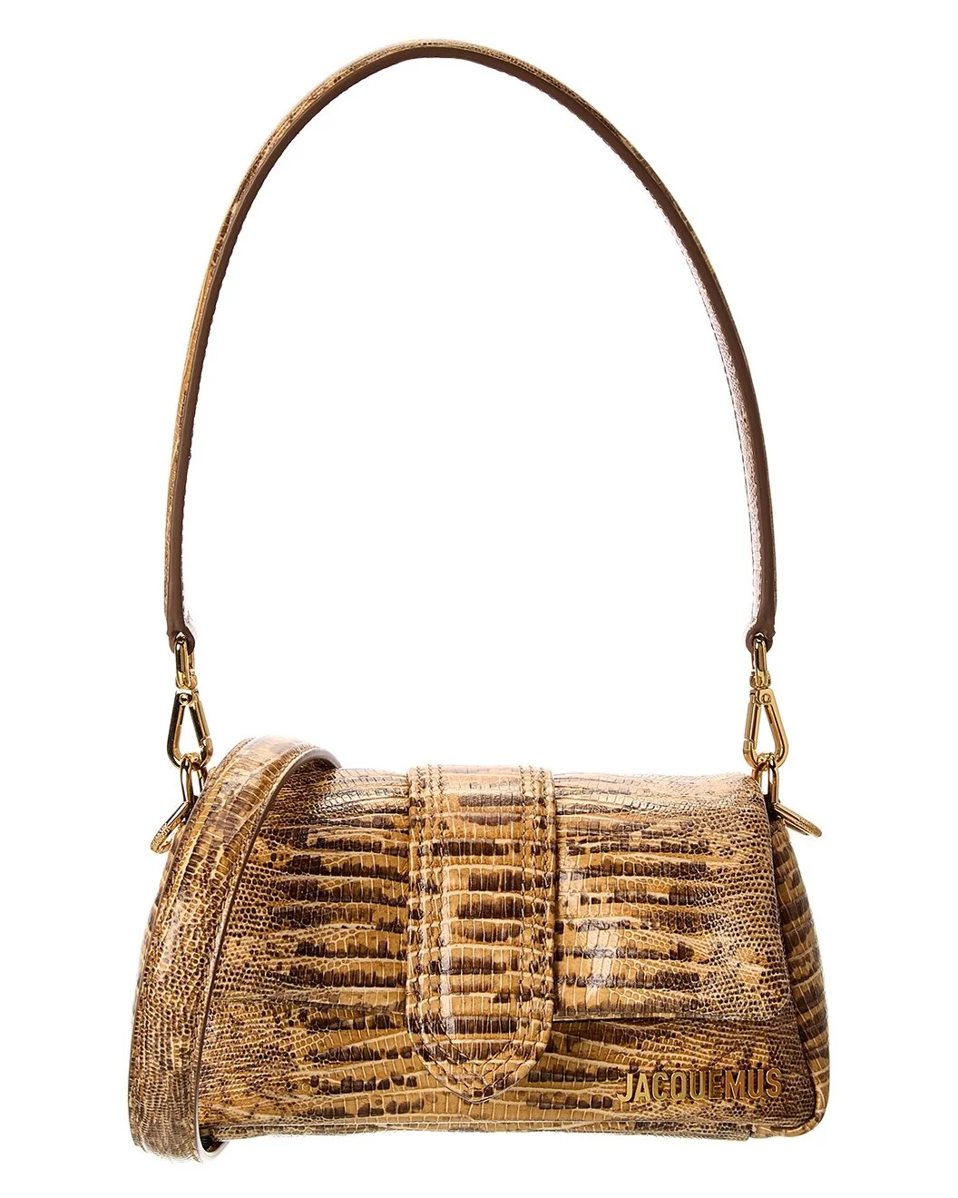 - About the brand: An accessible luxury brand cultivating new luxury. - Made in Italy - Petit Bambimou Croc-Embossed Leather Shoulder Bag in brown croc-embossed leather and gold-tone hardware with logo accent - Interior design details: canvas interior, wall pocket - Measures 8in wide x 4.3in high x 3.5in deep - Top handle drops 13in - Adjustable and removable shoulder strap drops 21in - Fold-over flap with magnetic closure - Please note: All measurements were taken by hand and are approximate; slight variations may occur. - Our products are 100% genuine. In some cases we purchase merchandise from trusted independent suppliers and not directly from the brand owner. In all cases we stand by the authenticity of every product sold on our site.