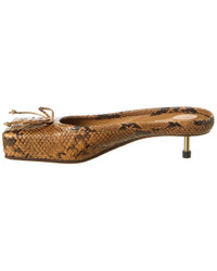 - Price as marked - About the brand: An accessible luxury brand cultivating new luxury. - Please note: Size selections are European. For US conversions, please reference size chart. - Made in Italy - Snake-Embossed Leather Mule in brown snake-embossed leather and gold-tone hardware with pin heel, bow accent and squared toe - Lightly padded leather insole - Smooth leather sole - 1.5in heel - Please note: All measurements are approximate and were taken from a size 38; slight variations may occur. - Our products are 100% genuine. In some cases we purchase merchandise from trusted independent suppliers and not directly from the brand owner. In all cases we stand by the authenticity of every product sold on our site.