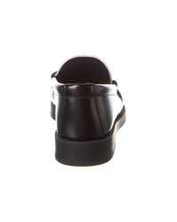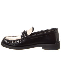 Addie/JC Black and Latte Box Calf Leather Flat Loafers with JC Emblem