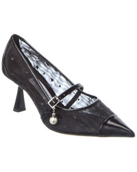 Black Spazzolato and Heart Mesh Pumps with Pearl Charm