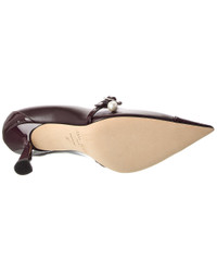 - About the brand: Born in London in the early 90's, Jimmy Choo was one of the first luxury brands to bring shoes and handbags to the red carpet. A playful sense of glamour and exceptional Italian craftsmanship separate Jimmy Choo from the rest, in Hollywood and beyond. - Please note: Size selections are European. For US conversions, please reference size chart. - Based on feedback from Members, this brand typically runs small. We suggest sizing up a half size for most styles. - Made in Italy - Aren 65 Leather Pump in deep merlot leather and silver-tone hardware with logo pearl charm - Adjustable ankle strap with buckle closure - Lightly padded leather insole - Smooth leather sole - 2.5in heel - Please note: All measurements are approximate and were taken from a size 37; slight variations may occur. - Our products are 100% genuine. In some cases we purchase merchandise from trusted independent suppliers and not directly from the brand owner. In all cases we stand by the authenticity of every product sold on our site.