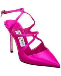 - About the brand: Born in London in the early 90's, Jimmy Choo was one of the first luxury brands to bring shoes and handbags to the red carpet. A playful sense of glamour and exceptional Italian craftsmanship separate Jimmy Choo from the rest, in Hollywood and beyond. - Please note: Size selections are European. For US conversions, please reference size chart. - Based on feedback from Members, this brand typically runs small. We suggest sizing up a half size for most styles. - Made in Italy - Azia 95 Satin Pump in fuchsia satin and gold-tone hardware with strappy design - Adjustable ankle strap with buckle closure - Lightly padded leather insole - Smooth leather sole - 3.75in heel - Please note: All measurements are approximate and were taken from a size 37; slight variations may occur. - Our products are 100% genuine. In some cases we purchase merchandise from trusted independent suppliers and not directly from the brand owner. In all cases we stand by the authenticity of every product sold on our site.