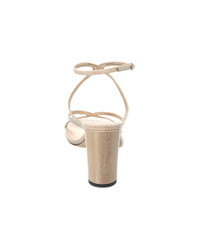 - About the brand: Born in London in the early 90's, Jimmy Choo was one of the first luxury brands to bring shoes and handbags to the red carpet. A playful sense of glamour and exceptional Italian craftsmanship separate Jimmy Choo from the rest, in Hollywood and beyond. - Please note: Size selections are European. For US conversions, please reference size chart. - Based on feedback from Members, this brand typically runs small. We suggest sizing up a half size for most styles. - Made in Italy - Azie 85 Leather Sandal in soft gold metallic linear leather and silver-tone hardware - Adjustable ankle strap with buckle closure - Lightly padded leather insole - Smooth leather sole - 3.5in heel - Please note: All measurements are approximate and were taken from a size 37; slight variations may occur. - Our products are 100% genuine. In some cases we purchase merchandise from trusted independent suppliers and not directly from the brand owner. In all cases we stand by the authenticity of every product sold on our site.