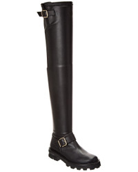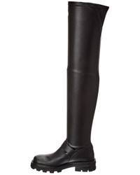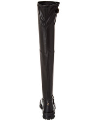 Biker II OTK Flat Black Stretch Bonded Fabric Knee-High Biker Boots