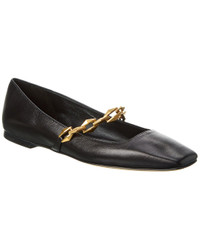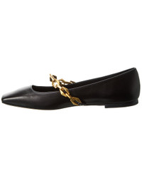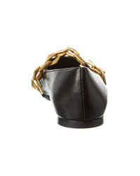 Diamond Tilda Flat Black Nappa Leather Flats with Chain