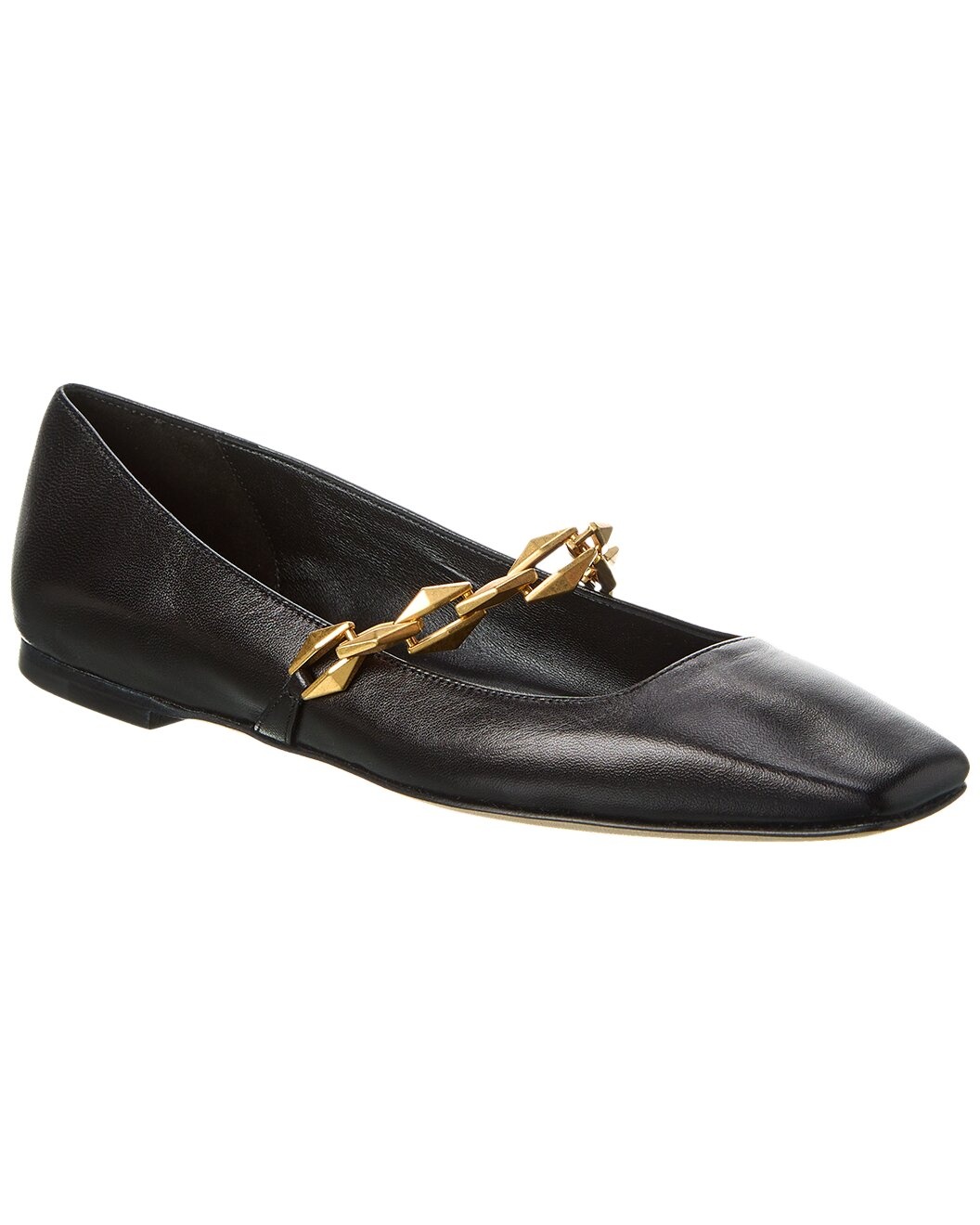- Price as marked - About the brand: Born in London in the early 90's, Jimmy Choo was one of the first luxury brands to bring shoes and handbags to the red carpet. A playful sense of glamour and exceptional Italian craftsmanship separate Jimmy Choo from the rest, in Hollywood and beyond. - Please note: Size selections are European. For US conversions, please reference size chart. - Based on feedback from Members, this brand typically runs small. We suggest sizing up a half size for most styles. - Made in Italy - Diamond Tilda Leather Flat in black leather and gold-tone hardware with chain accent - Lightly padded leather insole - Smooth leather sole - Our products are 100% genuine. In some cases we purchase merchandise from trusted independent suppliers and not directly from the brand owner. In all cases we stand by the authenticity of every product sold on our site.