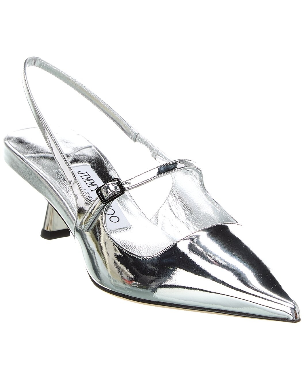 - About the brand: Born in London in the early 90's, Jimmy Choo was one of the first luxury brands to bring shoes and handbags to the red carpet. A playful sense of glamour and exceptional Italian craftsmanship separate Jimmy Choo from the rest, in Hollywood and beyond. - Please note: Size selections are European. For US conversions, please reference size chart. - Based on feedback from Members, this brand typically runs small. We suggest sizing up a half size for most styles. - Made in Italy - Didi 45 Leather Slingback Pump in silver liquid metal leather and silver-tone hardware with pointy-toe - Buckle closure - Lightly padded leather insole - Smooth leather sole - 2in heel - Please note: All measurements are approximate and were taken from a size 37; slight variations may occur. - Our products are 100% genuine. In some cases we purchase merchandise from trusted independent suppliers and not directly from the brand owner. In all cases we stand by the authenticity of every product sold on our site.
