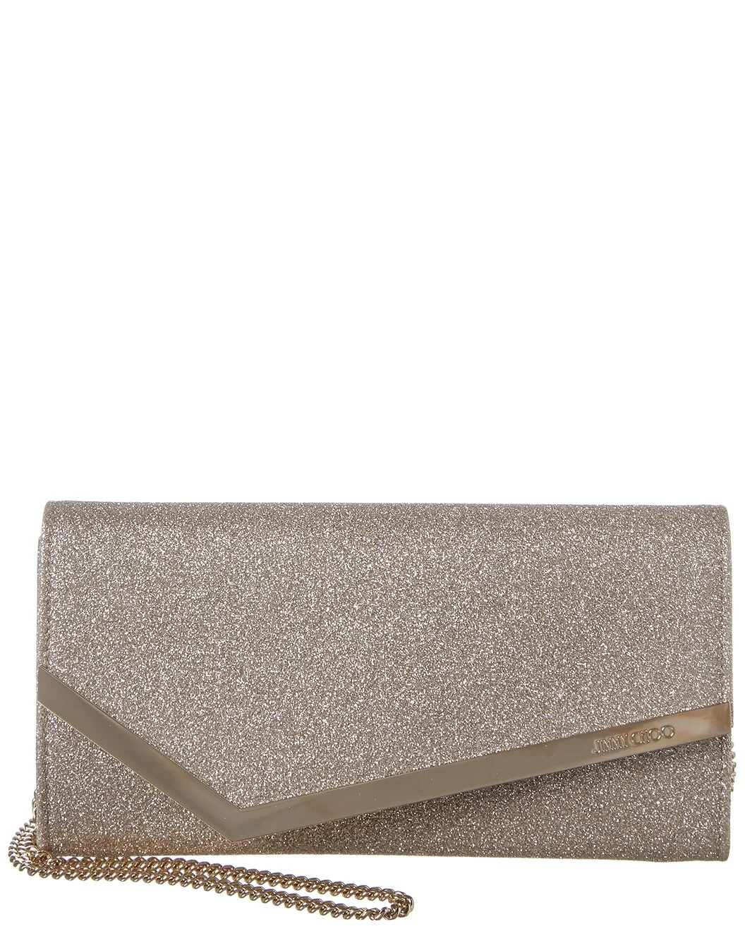 - About the brand: Born in London in the early 90's, Jimmy Choo was one of the first luxury brands to bring shoes and handbags to the red carpet. A playful sense of glamour and exceptional Italian craftsmanship separate Jimmy Choo from the rest, in Hollywood and beyond. - Made in Italy - Color/material: platinum ice calf leather - Design details: gold-tone hardware, metallic finish, engraved logo, flap closure with magnetic fastening - Interior design details: one zipped inner pocket, 4 compartments card - Measures 8.7in wide x 4.7in high x 1.2in deep - Removable shoulder strap drops 21.6in - magnetic fastening - Please note: All measurements were taken by hand and are approximate; slight variations may occur. - Our products are 100% genuine. In some cases we purchase merchandise from trusted independent suppliers and not directly from the brand owner. In all cases we stand by the authenticity of every product sold on our site.