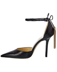 - Price as marked - About the brand: Born in London in the early 90's, Jimmy Choo was one of the first luxury brands to bring shoes and handbags to the red carpet. A playful sense of glamour and exceptional Italian craftsmanship separate Jimmy Choo from the rest, in Hollywood and beyond. - Please note: Size selections are European. For US conversions, please reference size chart. - Based on feedback from Members, this brand typically runs small. We suggest sizing up a half size for most styles. - Made in Italy - Eris 100 Leather Pump in black leather with pointy-toe and metallic tassels - Self-tie ankle wrap closure - Lightly padded leather insole - Smooth leather sole - 4in heel - Please note: All measurements are approximate and were taken from a size 37; slight variations may occur. - Our products are 100% genuine. In some cases we purchase merchandise from trusted independent suppliers and not directly from the brand owner. In all cases we stand by the authenticity of every product sold on our site.