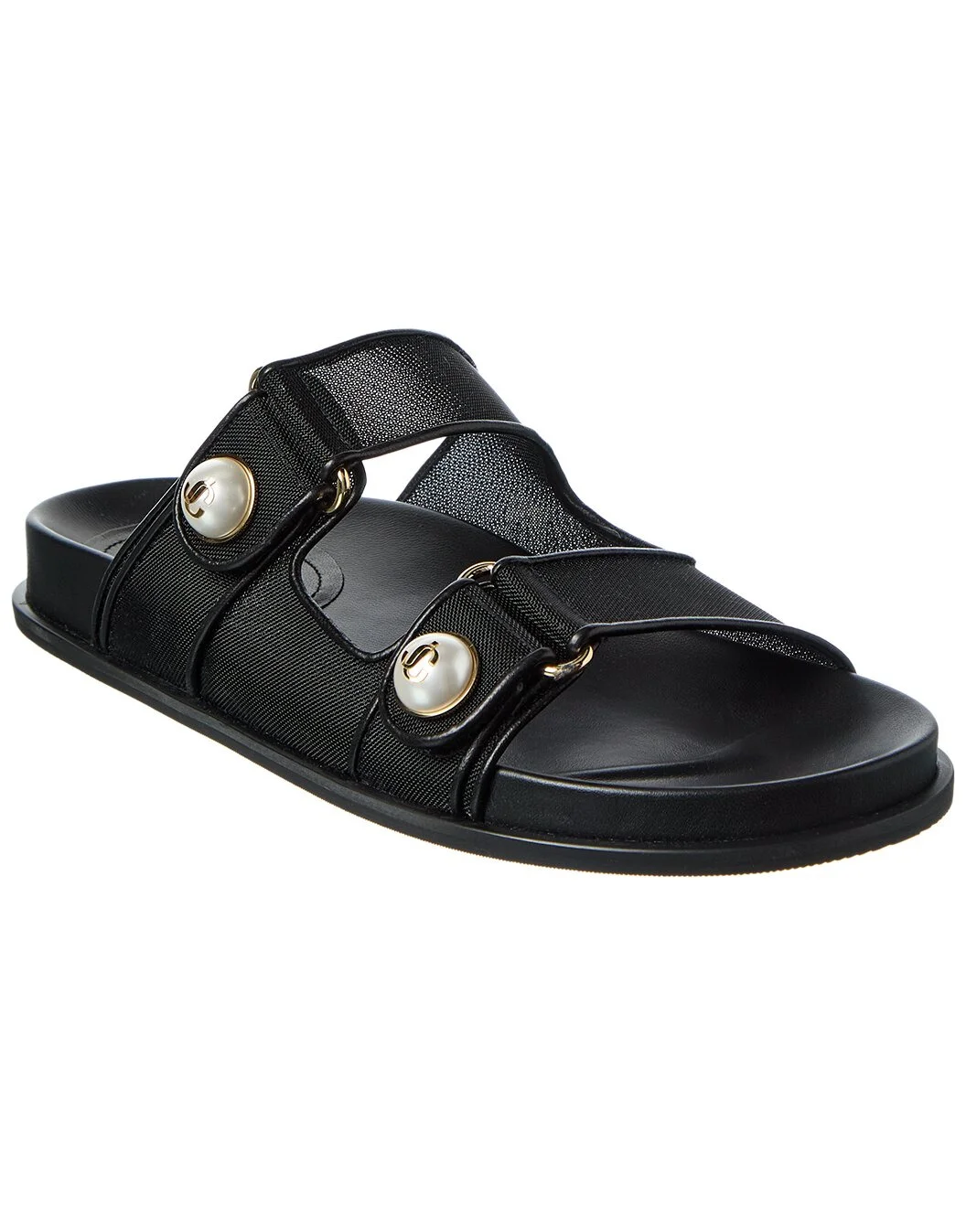 - About the brand: Born in London in the early 90's, Jimmy Choo was one of the first luxury brands to bring shoes and handbags to the red carpet. A playful sense of glamour and exceptional Italian craftsmanship separate Jimmy Choo from the rest, in Hollywood and beyond. - Please note: Size selections are European. For US conversions, please reference size chart. - Based on feedback from Members, this brand typically runs small. We suggest sizing up a half size for most styles. - Made in Spain - Fayence Mesh & Leather Sandal in black mesh and leather and gold-tone hardware with logo pearl accents - Adjustable straps with Velcro® closures - Lightly padded leather insole - Man-made sole - Our products are 100% genuine. In some cases we purchase merchandise from trusted independent suppliers and not directly from the brand owner. In all cases we stand by the authenticity of every product sold on our site.
