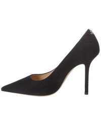 Love 100 Black Suede Pointy Toe Pumps with Jimmy Choo Button