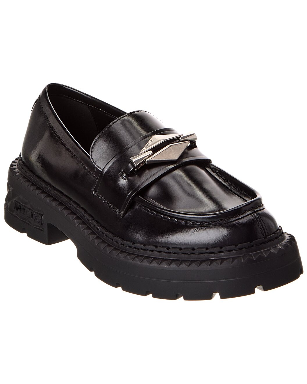 - About the brand: Born in London in the early 90's, Jimmy Choo was one of the first luxury brands to bring shoes and handbags to the red carpet. A playful sense of glamour and exceptional Italian craftsmanship separate Jimmy Choo from the rest, in Hollywood and beyond. - Based on feedback from Members, this brand typically runs small. We suggest sizing up a half size for most styles. - Please note: Size selections are European. For US conversions, please reference size chart. - Made in Italy - Marlow Diamond/F Leather Loafer in black leather and silver-tone hardware - Lightly padded leather insole - Rubber sole with traction - 1.75in heel - 1in platform - Please note: All measurements are approximate and were taken from a size 37; slight variations may occur. - Our products are 100% genuine. In some cases we purchase merchandise from trusted independent suppliers and not directly from the brand owner. In all cases we stand by the authenticity of every product sold on our site.