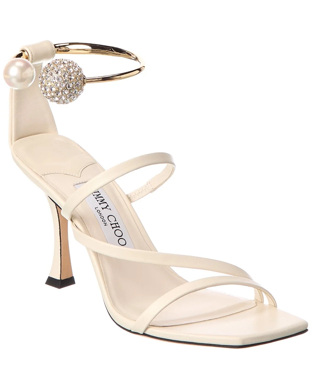 Ottilia 90 Latte Nappa Leather Sandals with Crystal and Pearl Strap