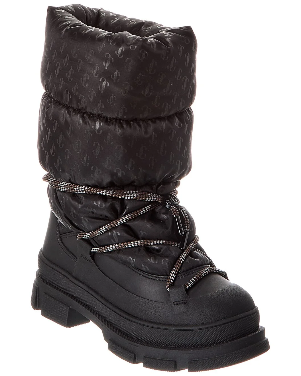 - About the brand: Born in London in the early 90's, Jimmy Choo was one of the first luxury brands to bring shoes and handbags to the red carpet. A playful sense of glamour and exceptional Italian craftsmanship separate Jimmy Choo from the rest, in Hollywood and beyond. - Please note: Size selections are European. For US conversions, please reference size chart. - Based on feedback from Members, this brand typically runs small. We suggest sizing up a half size for most styles. - Made in Italy - Yeda Puffy Nylon & Leather Boot in black/black puffy nylon and rubberized leather and tonal hardware with drawcord laces - Lightly padded insole - Rubber sole with traction - 2in heel - 1.5in platform - 9.5in shaft - 17in boot circumference - Please note: All measurements are approximate and were taken from a size 37; slight variations may occur. - The Boot Size Guide - Our products are 100% genuine. In some cases we purchase merchandise from trusted independent suppliers and not directly from the brand owner. In all cases we stand by the authenticity of every product sold on our site.