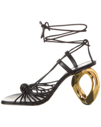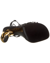 - Please note: Size selections are European. For US conversions, please reference size chart. - Made in Italy - Color/material: black leather - Design details: gold-tone hardware, chain link heel and knot accent - Self-tie ankle wrap closure - Lightly padded leather insole - Smooth leather sole - 4in heel - Please note: All measurements are approximate and were taken from a size 37; slight variations may occur. - Our products are 100% genuine. In some cases we purchase merchandise from trusted independent suppliers and not directly from the brand owner. In all cases we stand by the authenticity of every product sold on our site.