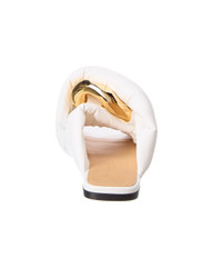 - Please note: Size selections are European. For US conversions, please reference size chart. - Made in Italy - Color/material: white faux leather - Design details: gold-tone hardware, twisted design and chunky chain accent - Lightly padded insole - Smooth man-made sole - Our products are 100% genuine. In some cases we purchase merchandise from trusted independent suppliers and not directly from the brand owner. In all cases we stand by the authenticity of every product sold on our site. - WARNING: - CA Residents - Prop 65