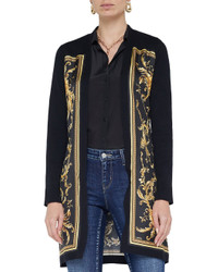 - Color/pattern: blk/gold barocco swirl - Approximately 26.25in from shoulder to hem - 70% cotton 20% nylon 10% silk - Dry clean only - Imported
