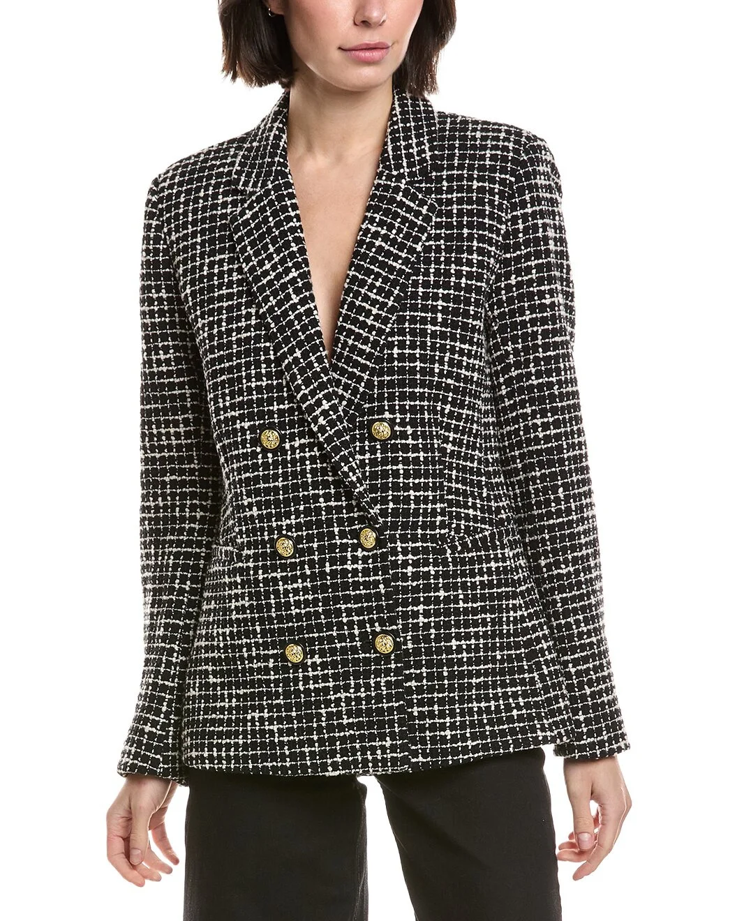 - Color/pattern: black and ecru - Approximately 28in from shoulder to hem - Model is 5'9 and is wearing a size 4. Measurements may vary slightly by size. - Design details: front pockets and button cuffs - Double-breasted button closure - Shell: 79% cotton, 18% polyester, 2% nylon, 1% acrylic - Lining: 100% polyester - Dry clean only - Imported