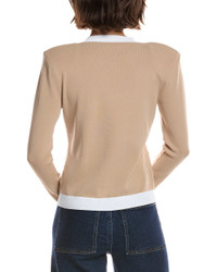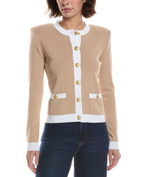- Color/pattern: biscuit/white - Approximately 22in from shoulder to hem - Model is 5'9 and is wearing a size small. Measurements may vary slightly by size. - Design details: crewneck, two front button-through pockets and ribbed trim - Button front - 80% rayon, 18% nylon, 2% spandex - Hand wash - Imported