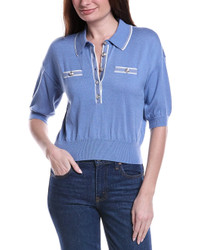- Color/pattern: harbor blue - Approximately 20in from shoulder to hem - Model is 5'10.5 and is wearing a size small. Measurements may vary slightly by size. - Design details: ribbed trim, and spread collar - Button placket - 56% nylon, 19% polyester, 15% acrylic, 9% wool, 1% metallic - Dry clean only - Imported