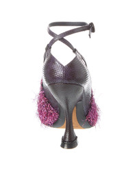 - Please note: Size selections are European. For US conversions, please reference size chart. - Made in Italy - Color/material: purple embossed leather - Design details: black hardware, pink tinsel detailing - Adjustable ankle strap with buckle closure - Lightly padded leather insole - Smooth leather sole - 4.5in heel - Please note: All measurements are approximate and were taken from a size 37; slight variations may occur. - Our products are 100% genuine. In some cases we purchase merchandise from trusted independent suppliers and not directly from the brand owner. In all cases we stand by the authenticity of every product sold on our site.