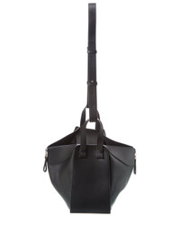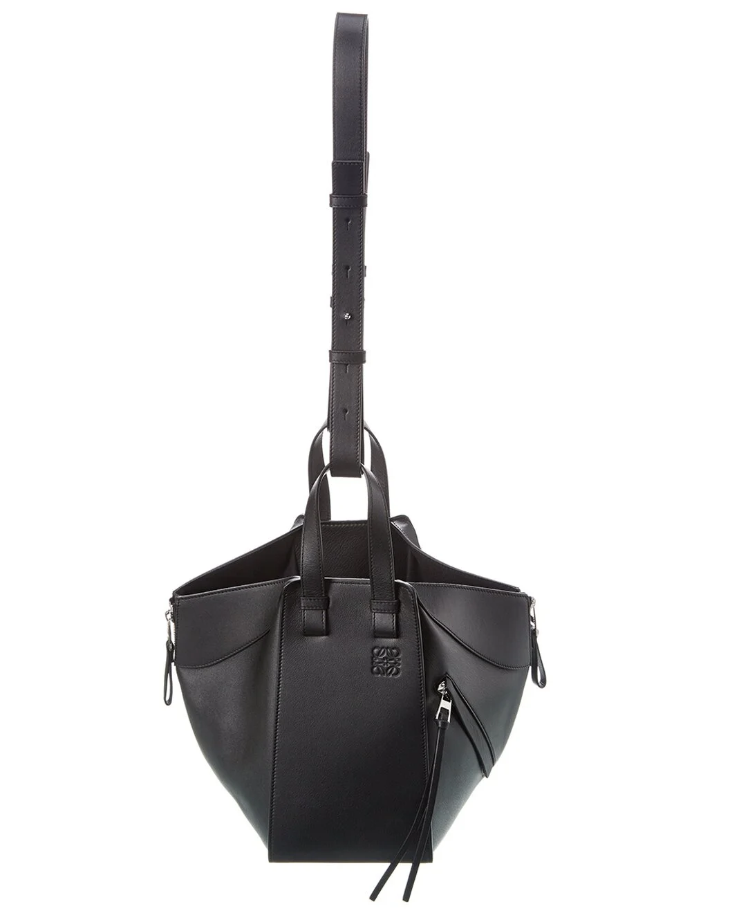 - About the brand: A legacy of luxury craftsmanship. - Made in Spain - Color/material: black leather - Exterior design details: silver-tone hardware - Interior design details: fabric lining, interior pockets - Measures 10in wide x 9.5in high x 5.3in deep - Top handles drop 5.5in - Adjustable and removable shoulder strap drops 20in - Open top - Please note: All measurements were taken by hand and are approximate; slight variations may occur. - Our products are 100% genuine. In some cases we purchase merchandise from trusted independent suppliers and not directly from the brand owner. In all cases we stand by the authenticity of every product sold on our site.