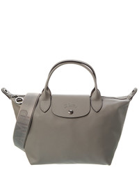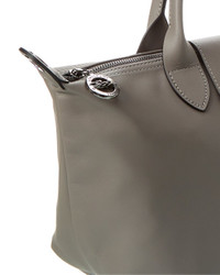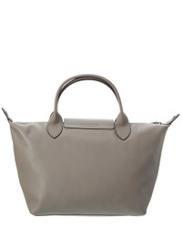 - About the brand: Understated luxury leather goods with a French elegance. - Made in France - Le Pliage Xtra Leather Bag in grey calf leather with Longchamp logo - Measures 16in wide at base x 8.5in high x 5.5in deep - Snap button and zipper closures - Please note: All measurements were taken by hand and are approximate; slight variations may occur. - Our products are 100% genuine. In some cases we purchase merchandise from trusted independent suppliers and not directly from the brand owner. In all cases we stand by the authenticity of every product sold on our site.