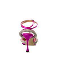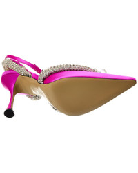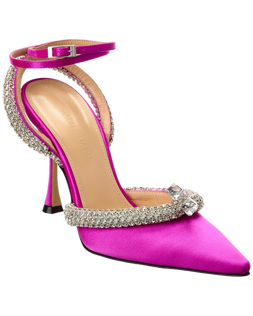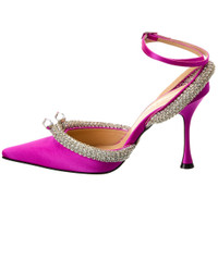 - Please note: Size selections are European. For US conversions, please reference size chart. - Made in Italy - Color/material: fuchsia satin - Design details: silver-tone hardware, crystal embellishments and pointy-toe - Adjustable ankle strap with buckle closure - Lightly padded leather insole - Smooth leather sole - 4in heel - Please note: All measurements are approximate and were taken from a size 37; slight variations may occur. - Our products are 100% genuine. In some cases we purchase merchandise from trusted independent suppliers and not directly from the brand owner. In all cases we stand by the authenticity of every product sold on our site.