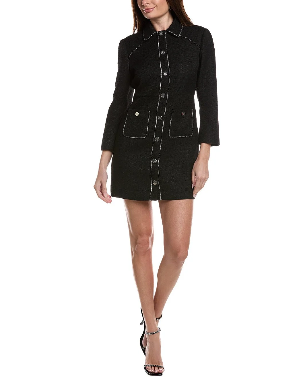 - Please note: Size selections are European. For US conversions, please reference the size chart. - Color/pattern: noir - Approximately 33in from shoulder to hem - Model is 5'10.5 and is wearing a size 38. Measurements may vary slightly by size. - Design details: spread collar, silver-tone hardware, and patch pockets - Button front - 100% polyester - Lining: 90% polyester, 10% elastane - Hand wash - Imported