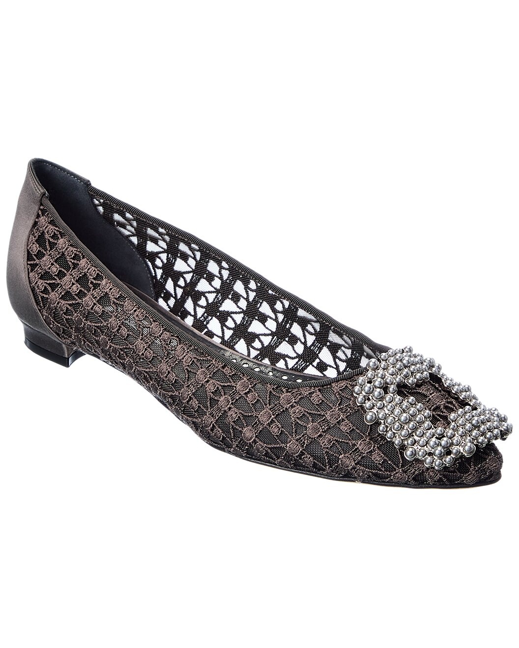 - About the brand: Beautifully feminine, elegant, and iconic. - Please note: Size selections are European. For US conversions, please reference size chart. - Based on feedback from Members, this brand typically runs small. We suggest sizing up a half size for most styles. - Made in Italy - Hangisi Lace Flat in grey lace and silver-tone hardware with pearl-embellished buckle - Lightly padded leather insole - Smooth leather sole - Our products are 100% genuine. In some cases we purchase merchandise from trusted independent suppliers and not directly from the brand owner. In all cases we stand by the authenticity of every product sold on our site.
