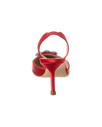 - About the brand: Beautifully feminine, elegant, and iconic. - Please note: Size selections are European. For US conversions, please reference size chart. - Based on feedback from Members, this brand typically runs small. We suggest sizing up a half size for most styles. - Made in Italy - Hangisli 70 Satin Slingback Pump in red satin with crystal-embellished buckle - Lightly padded leather insole - Smooth leather sole - 3in heel - Please note: All measurements are approximate and were taken from a size 37; slight variations may occur. - Our products are 100% genuine. In some cases we purchase merchandise from trusted independent suppliers and not directly from the brand owner. In all cases we stand by the authenticity of every product sold on our site.