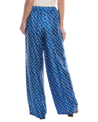 - About the brand: Feminine and sophisticated pieces with an undeniable Italian influence. - Anversa Silk Pant in blue with elasticized waistband and two front pockets - Inseam approximately 33in - Model is 5'10 and is wearing a size 2. Measurements may vary slightly by size. - 100% silk - Dry clean only - Made in Italy