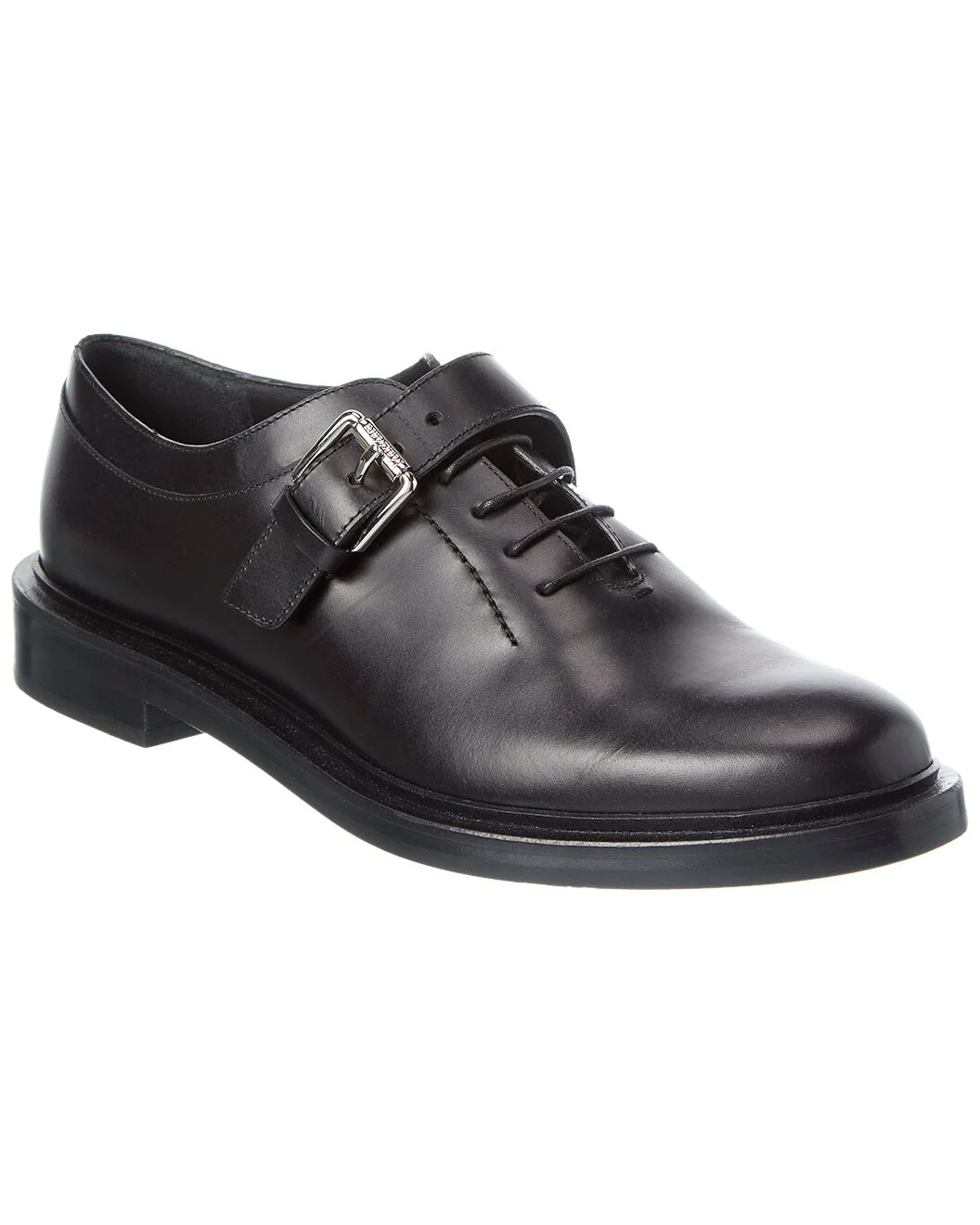 - About the brand: Feminine and sophisticated pieces with an undeniable Italian influence. - Please note: Size selections are European. For US conversions, please reference size chart. - Leather Oxford in black leather and silver-tone hardware with buckle strap - Lace-up closure - Lightly padded leather insole - Smooth man-made sole - 1.25in heel - Please note: All measurements are approximate and were taken from a size 37; slight variations may occur. - Made in Italy