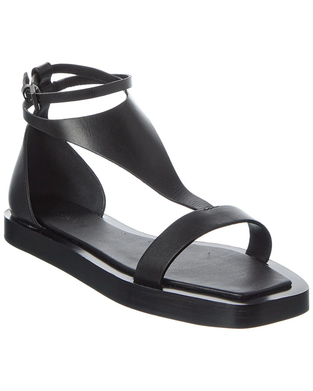 - About the brand: Feminine and sophisticated pieces with an undeniable Italian influence. - Please note: Size selections are European. For US conversions, please reference size chart. - Leather Sandal in black leather and silver-tone hardware - Adjustable ankle strap with buckle closure - Lightly padded leather insole - Smooth leather sole - Made in Italy