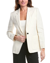 - About the brand: Feminine and sophisticated pieces with an undeniable Italian influence. - Micron Linen-Blend Blazer in white and  black with notched lapel, left chest pocket, two front patch pockets and center vent at back hem - Approximately 28in from shoulder to hem - Model is 5'10 and is wearing a size 2. Measurements may vary slightly by size. - Single-button closure - 58% linen, 42% cotton - Lining: 56% viscose, 44% cotton - Dry clean only - Made in Italy