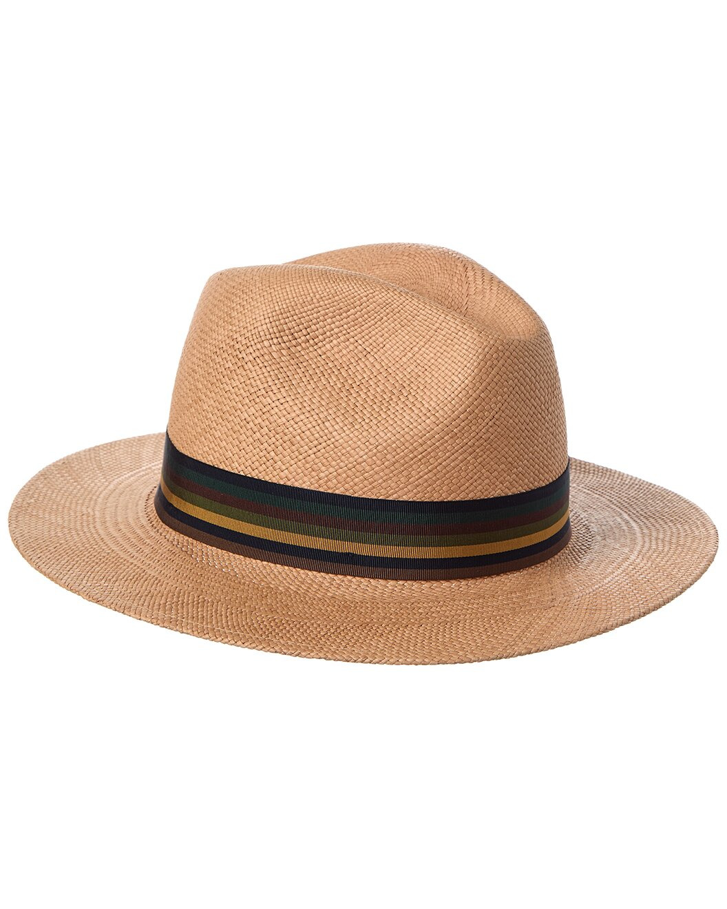 - About the brand: Feminine and sophisticated pieces with an undeniable Italian influence. - Color/pattern: brown - Design details: grosgrain ribbon and silver-tone logo accent - Measures 5in from top of head to hem - 100% straw - Trim: 67% viscose, 33% polyester - Dry clean only - Made in Italy - Please note: All measurements were taken by hand and are approximate; slight variations may occur.