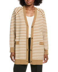- About the brand: Feminine and sophisticated pieces with an undeniable Italian influence. - Tenore Cardigan in brown stripe with raglan sleeves and patch pockets - Approximately 32in from shoulder to hem - Model is 5'9 and is wearing a size small. Measurements may vary slightly by size. - Button front - 62% viscose, 38% polyester - Hand wash - Imported