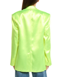 - Color/pattern: bright yellow - Approximately 31in from shoulder to hem - Model is 5'9 and is wearing a size small. Measurements may vary slightly by size. - Design details: notch lapel, left chest pocket, two front pockets, and center vent at back hem - Button front - 100% polyester - Dry clean only - Made in Italy