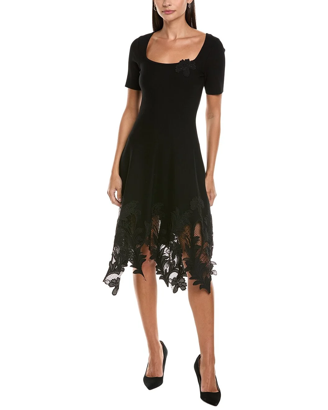 - About the brand: Feminine. Transcendent. Enduring. - A-Line Dress in black with scoop neck and lace hem - Approximately 48in from shoulder to hem - Model is 5'10 and is wearing a size small. Measurements may vary slightly by size. - Center back zipper with hook-and-eye closure - 72% viscose, 28% polyester - Lace: 100% polyester - Dry clean only - Made in Italy - Our products are 100% genuine. In some cases we purchase merchandise from trusted independent suppliers and not directly from the brand owner. In all cases we stand by the authenticity of every product sold on our site.