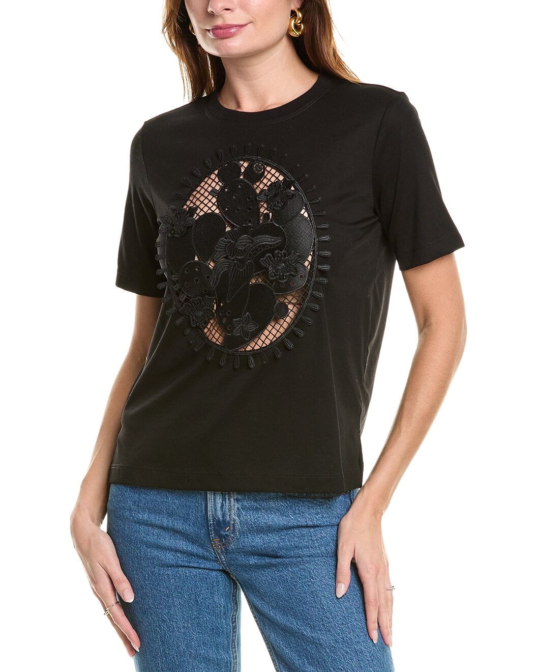 - About the brand: Feminine. Transcendent. Enduring. - Cactus Applique T-Shirt in black with embroidered front and side slits at hem - Approximately 24in from shoulder to hem - Model is 5'10 and is wearing a size small. Measurements may vary slightly by size. - 100% cotton - Dry clean only - Made in the USA - Our products are 100% genuine. In some cases we purchase merchandise from trusted independent suppliers and not directly from the brand owner. In all cases we stand by the authenticity of every product sold on our site.