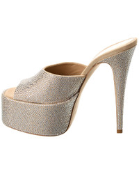 - About the brand: Bold designer footwear with contemporary Italian luxury. - Please note: Size selections are European. For US conversions, please reference size chart. - Holly Marina Suede Platform Sandal in quartz suede and silver-tone hardware with crystal embellishments and peep toe - Lightly padded leather insole - Smooth leather sole - 6in heel - 2in platform - Please note: All measurements are approximate and were taken from a size 37; slight variations may occur. - Made in Italy